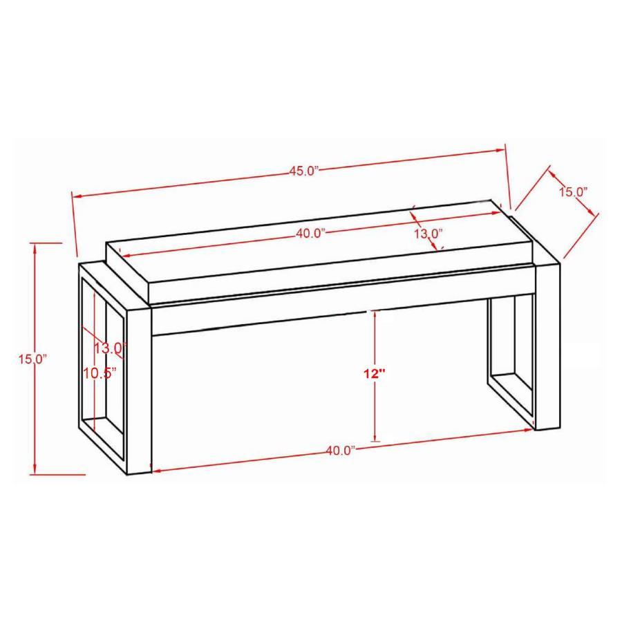 - The wood frame of the bench is weathered for a slightly rustic appeal