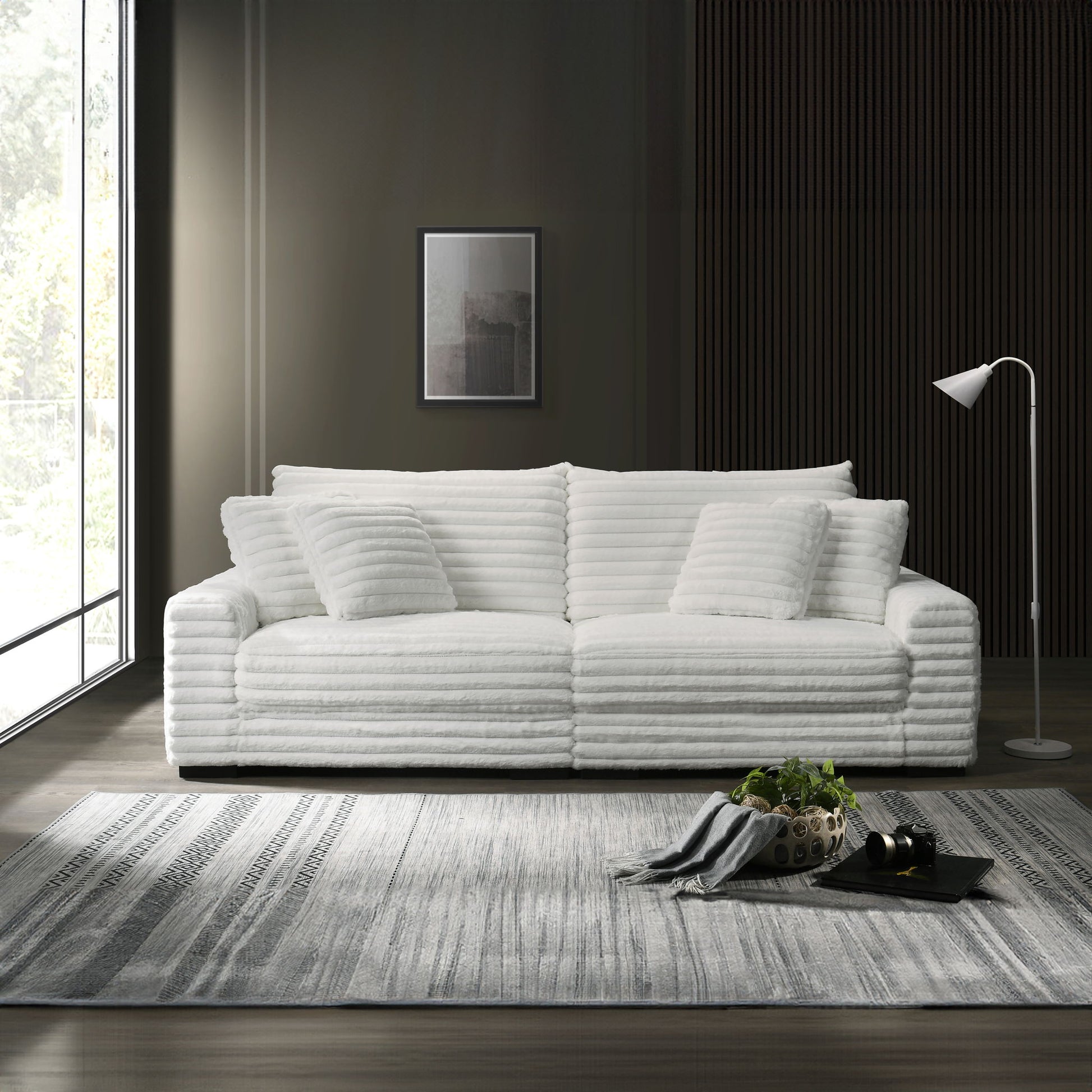 This two-piece Embrace sofa is designed to transform your living space into a haven of comfort and style. Made from 100% polyester fabric with a plush, blanket-like texture, it promises ultimate relaxation. The set includes a right arm facing chair, a left arm facing chair, and four cozy accent pillows, all crafted to enhance your lounging experience. The sofa''s high-density, resilient foam cushions provide unparalleled support, while the sturdy frame, constructed from a mix of solid and manufactured woods, ensures long-lasting durability. The luxurious ribbed channel fabric not only looks sophisticated but also adds a tactile dimension to your decor. Perfectly balancing easy living and transitional styling, the Embrace collection beckons you to snuggle up and unwind, making it a must-have centerpiece for any home.