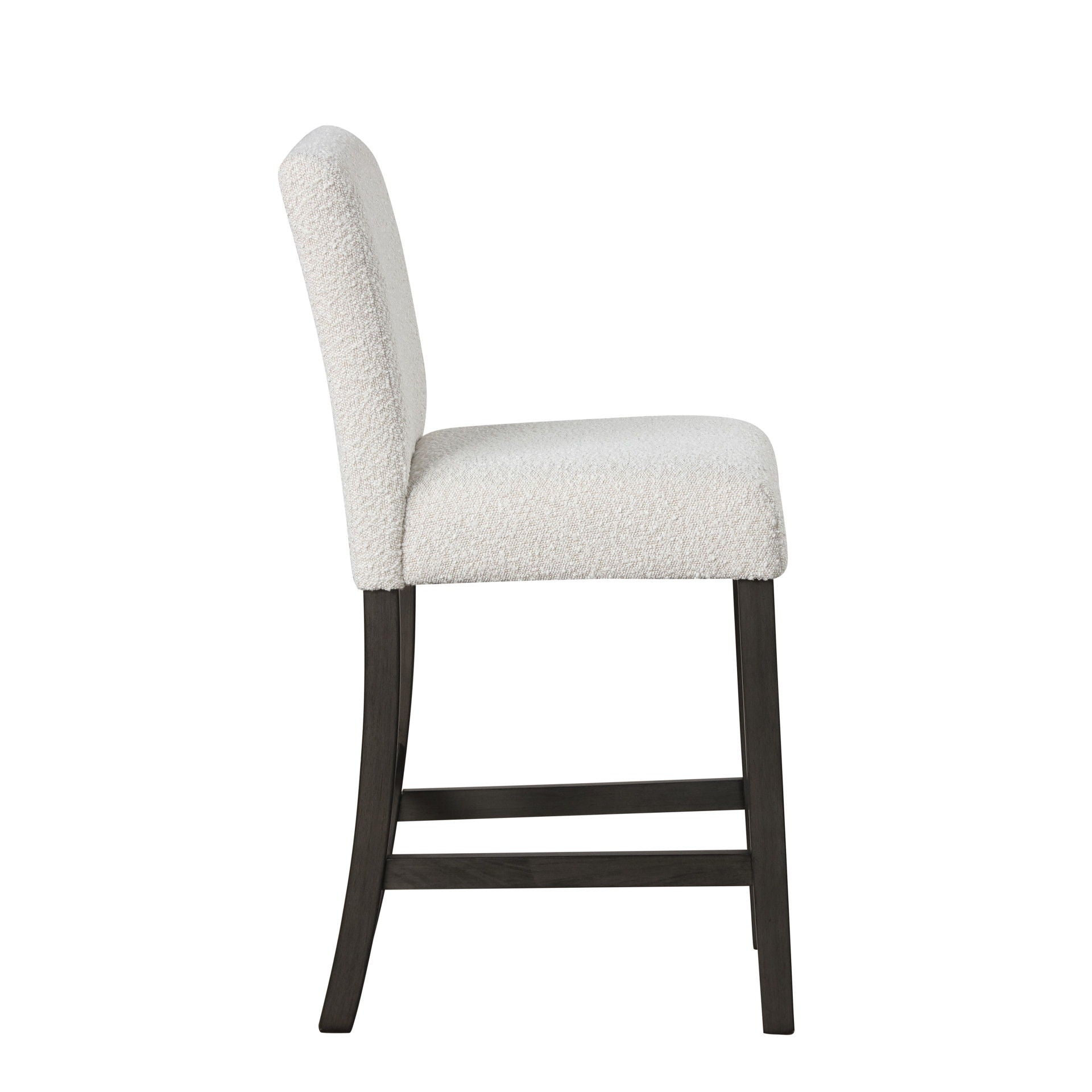 The High Line Upholstered Counter Dining Chairs combine durability, comfort, and style to enhance any living space. Each set includes two counter chairs, expertly crafted from solid Acacia and Rubberwood, along with high-quality manufactured woods and Birch veneers, ensuring durability and stability. The luxurious bouclé fabric offers exceptional durability, making these chairs ideal for frequent use. The unique looped texture provides a plush, comfortable seating experience, adding both elegance and longevity to your dining area. Perfect for dining rooms, home offices, or as accent chairs in living spaces, these chairs add both functionality and aesthetic appeal. The High Line Upholstered Counter Chairs seamlessly blend into various interior designs, making them a versatile and stylish addition to any home.