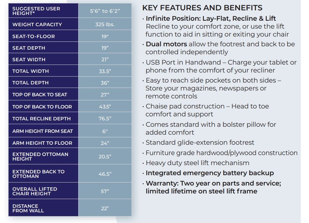 Built with furniture-grade hardwood/plywood, a heavy-duty steel lift mechanism, and an integrated emergency battery backup, this chair is made for long-term dependability.