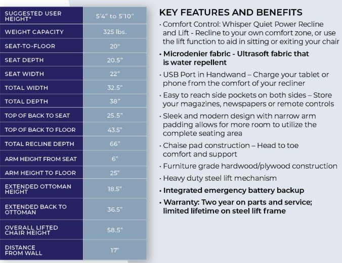 This 3-position power lift recliner is perfect for everyday relaxation — whether you’re sitting upright, reclining into your comfort zone, or using the lift function to stand safely. The USB charging port in the handwand keeps your phone or tablet powered while you relax.
