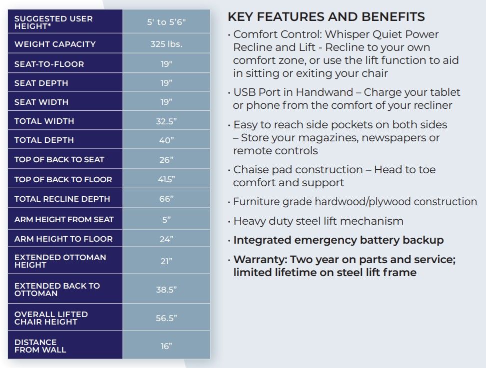 This model is an FDA Class II Medical Device, built to safely assist with mobility. With three positions, whisper-quiet lift and recline, and a USB port in the handwand for device charging, the MM4001 is both functional and convenient.