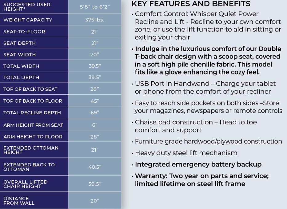 Whisper-quiet power recline and lift — recline to your comfort zone or use the lift function to stand with ease.