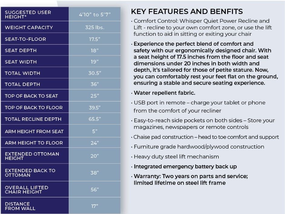 The Mega Motion MM6410 TRU Petite Lift Chair is designed specifically for those with smaller frames who deserve the same comfort and safety as full-size recliners. Recognized as part of the brand voted a Furniture Today 2024 Reader Rankings Finalist for Best Lift Chair, the MM6410 is one of the most thoughtfully engineered lift chairs for petite users.