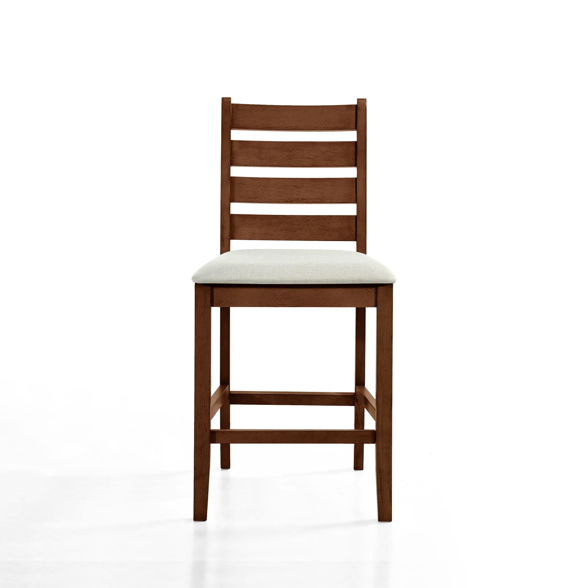 Discover the Pascal Counter Height Dining Room Set in warm finish, featuring a wood counter dining table and counter chairs. This set is crafted from a durable combination of solid Rubberwood and manufactured woods, ensuring long-lasting quality. Each solid wood chair includes four base stretchers, providing extra stability and support. The Pascal set boasts a rich, sophisticated finish, achieved through a meticulous multi-step process that highrichs the natural beauty of the wood with rub-throughs and glazing. Each chair is designed for comfort, featuring high-density foam cushions covered in easy-care 100% polyester fabric.The 60-inch counter table offers roomy dining for six, making it an ideal gathering spot for both dinner and game nights. The versatile design, with subtly rounded edges, tapered legs, and ladderback style chairs, fits seamlessly into transitional, farmhouse, and contemporary decor styles. Combining comfort and elegance, the Pascal set enhances any dining space with its timeless appeal.