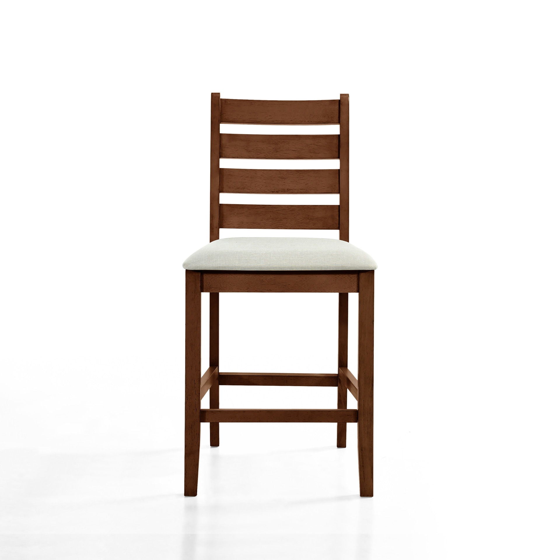Introducing the Pascal Ladderback Counter Chairs, a perfect blend of durability and style. These counter-height chairs are crafted from solid Rubberwood and feature four base stretchers for enhanced stability, ensuring they withstand daily use with ease. The chairs boast a rich, sophisticated finish achieved through a meticulous multi-step process, including rub-throughs and glazing that enhance the natural beauty of the wood. Designed for comfort, each chair includes high-density foam cushions covered in easy-care 100% polyester fabric, offering a comfortable seating experience. With subtly rounded edges, tapered legs, and a classic ladderback design, these chairs bring an upscale look to any space. Their versatile style seamlessly fits into transitional, farmhouse, and contemporary decor, making the Pascal Ladderback Counter Chairs a stylish and practical addition to your dining or kitchen area.