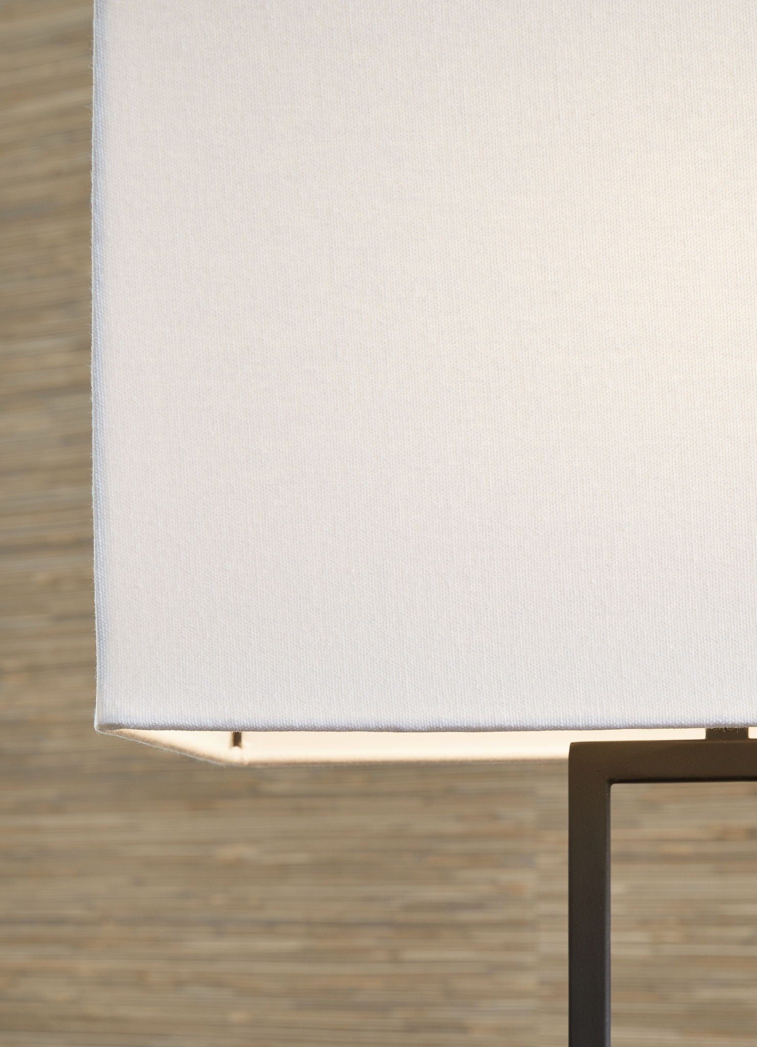 Illuminate your style with this table lamp. Its sleek geometric design, finished in black and brown, adds a designer touch to your abode. The contrasting white shade diffuses light for a soft artistic ambiance.